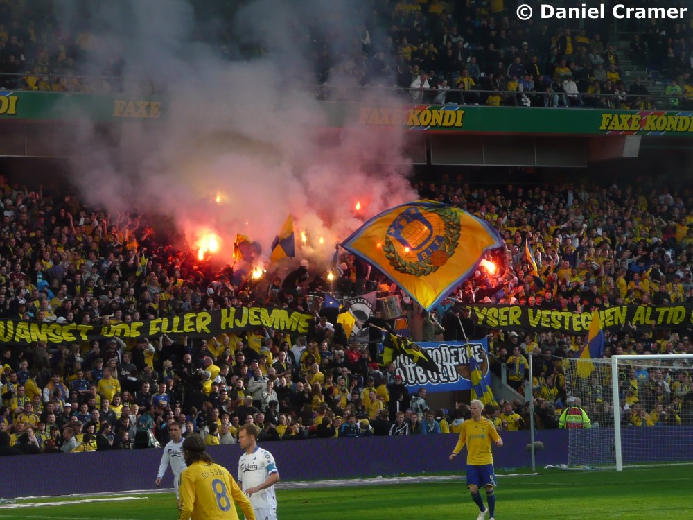 wurden. Auch zu Beginn der zweiten Halbzeit gab es von den Brøndby-Supportern