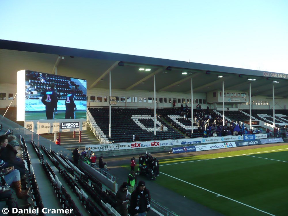 Skagerak-Arena, dem Heimstadion von Odd Grenland. Leider hat der Name