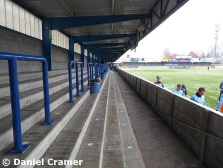 überdachte, kleine Stehplatztribünen. Nur hinter dem